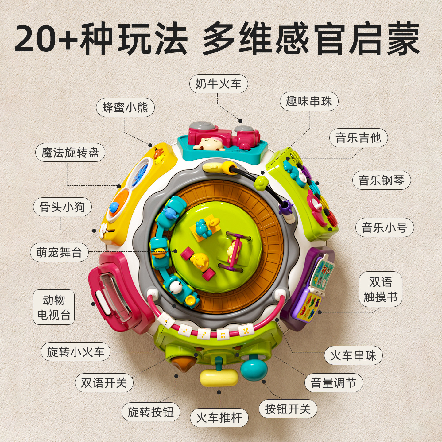 📚 谷雨早教游戏桌4.0多功能音乐玩具桌益智婴幼儿6-8-12个月儿童礼