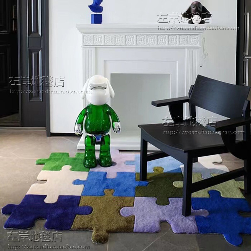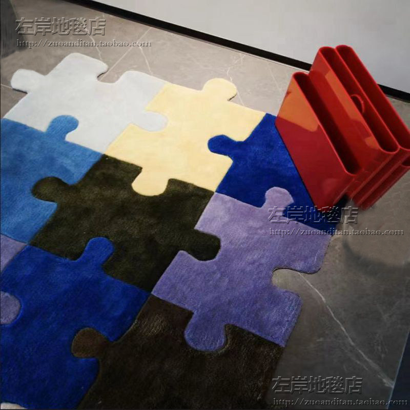 📚 彩色不规则拼图地毯客厅茶几卧室床边书房衣帽间加厚手工地毯定制