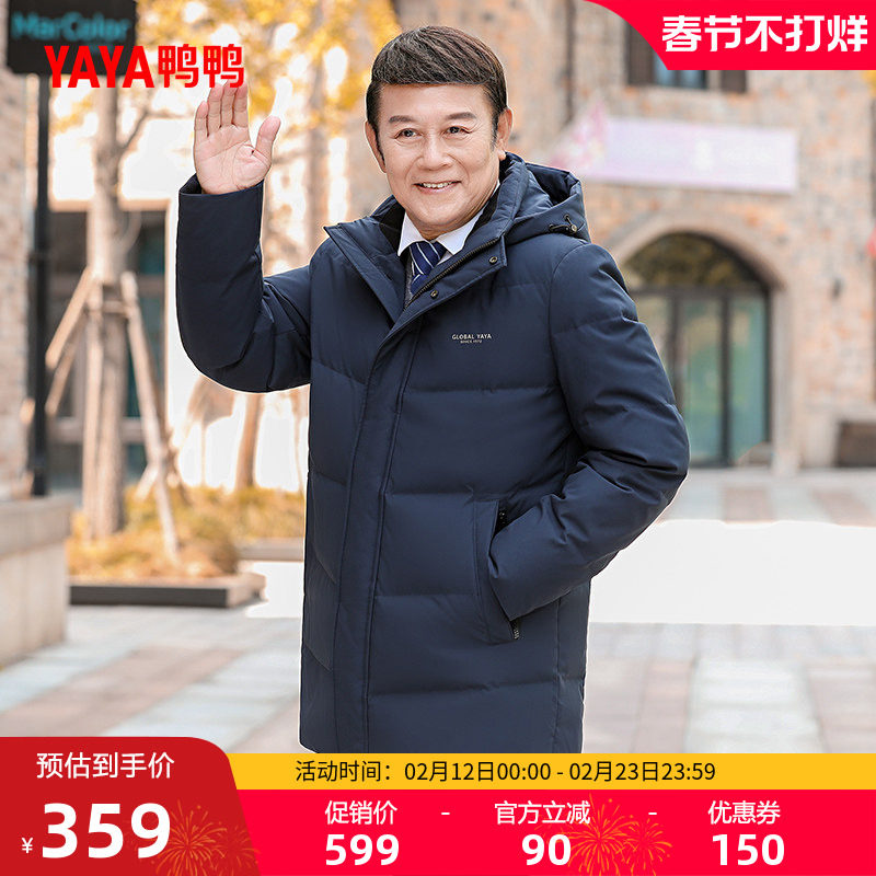 📚 鸭鸭中老年羽绒服男士2024年冬季反季中长款连帽商务宽松爸爸装J