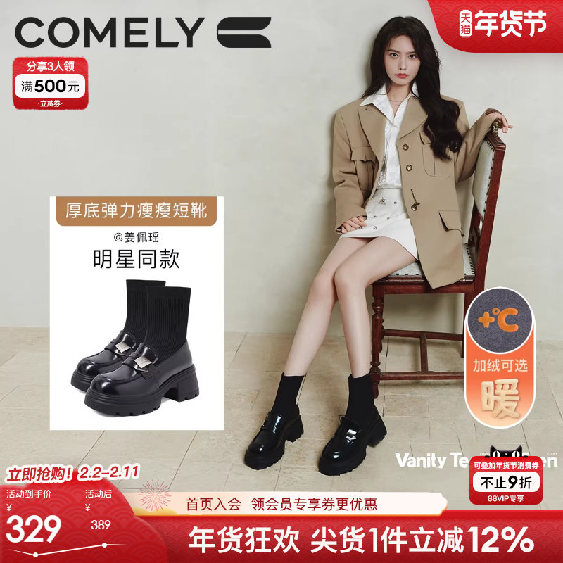 📚 明星同款康莉弹力袜靴女冬季针织瘦瘦靴圆头厚底粗跟高跟短靴少女