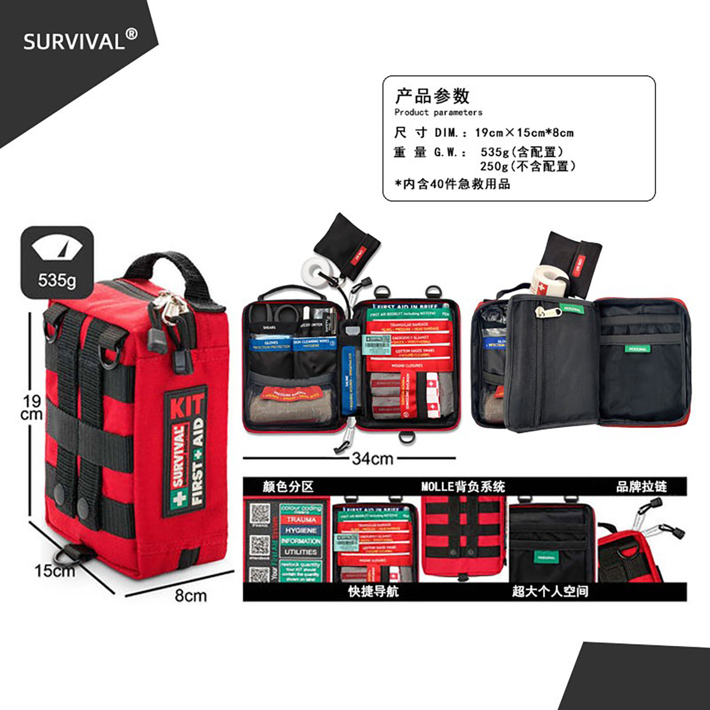 📚 生存者SES03车载户外便携耐磨医疗徒步急救包应急救援医药收纳包