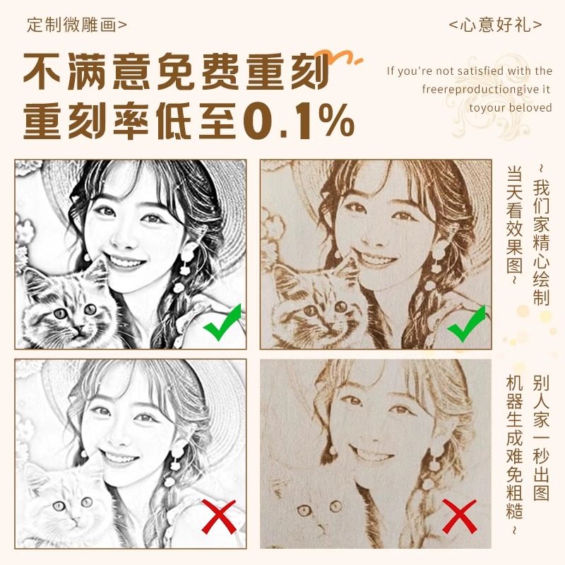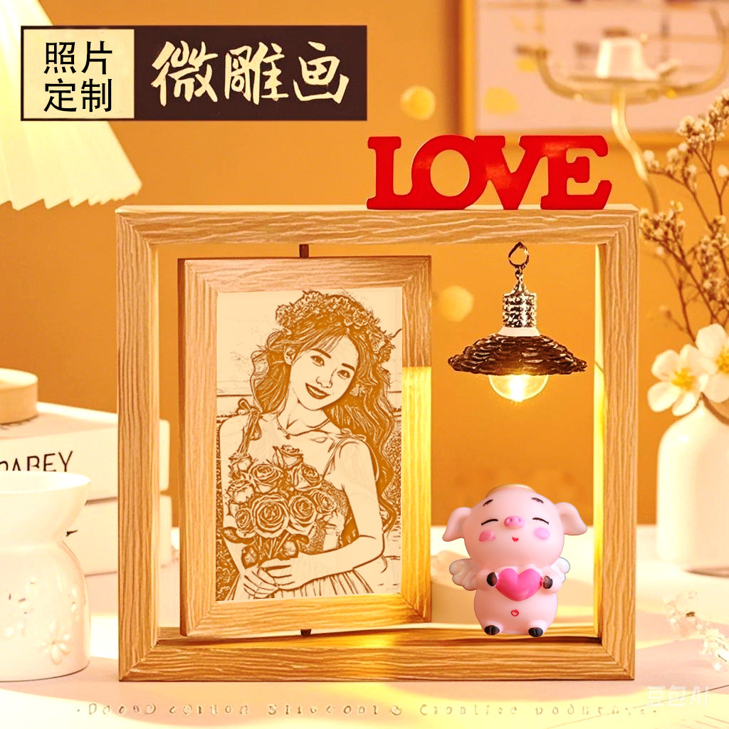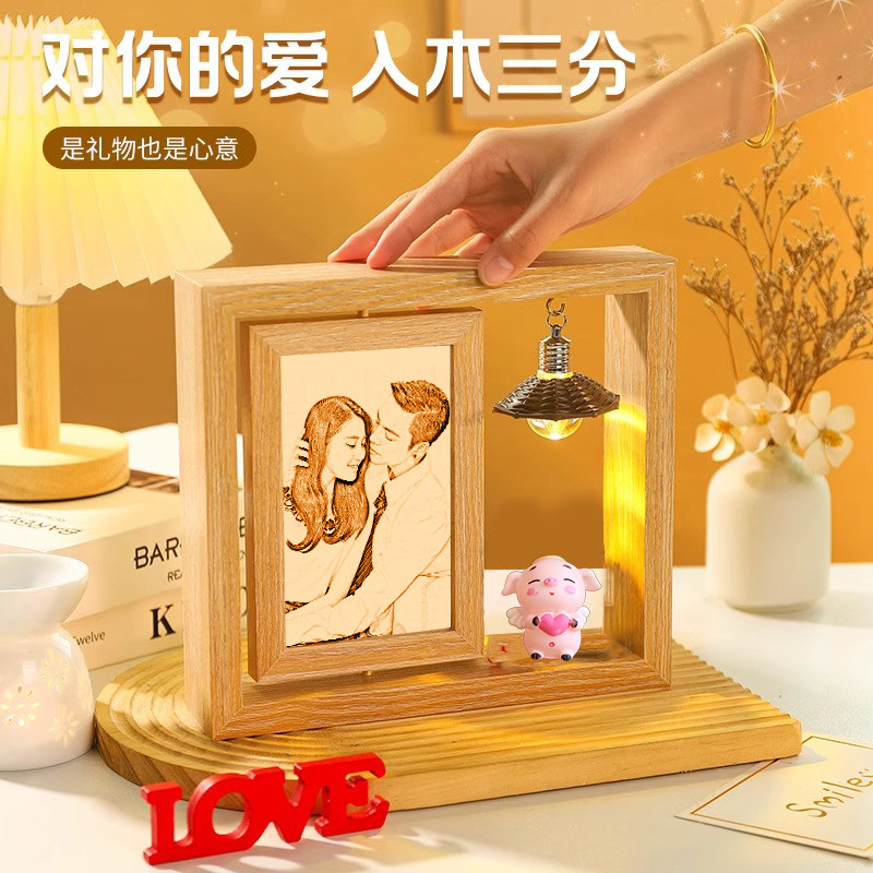 📚 照片定制微雕生日礼物女生闺蜜跨年diy实用情侣周年纪念木刻相框