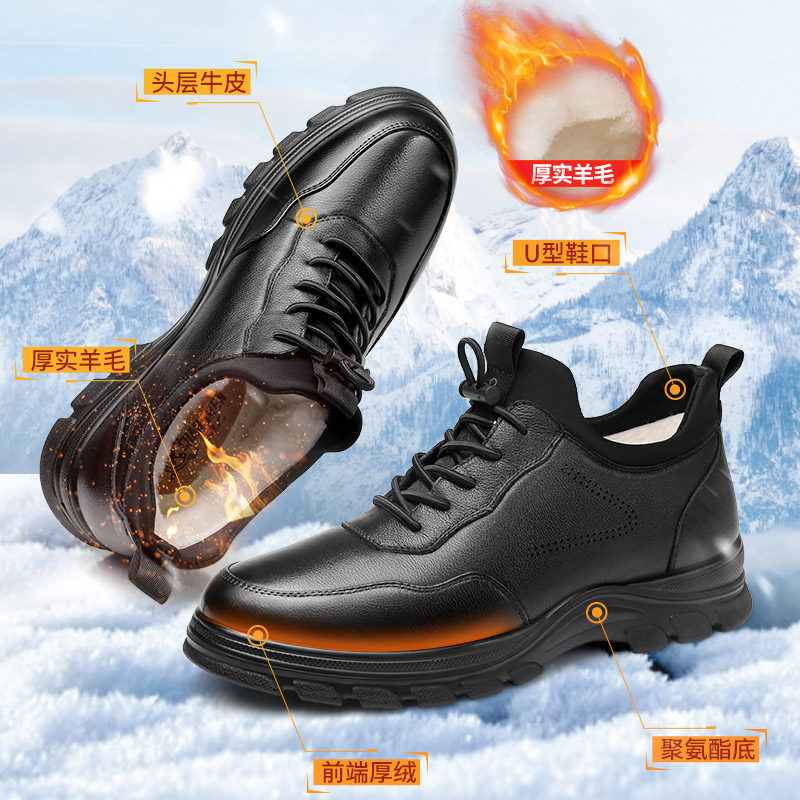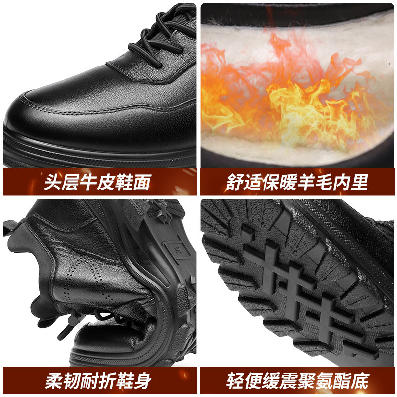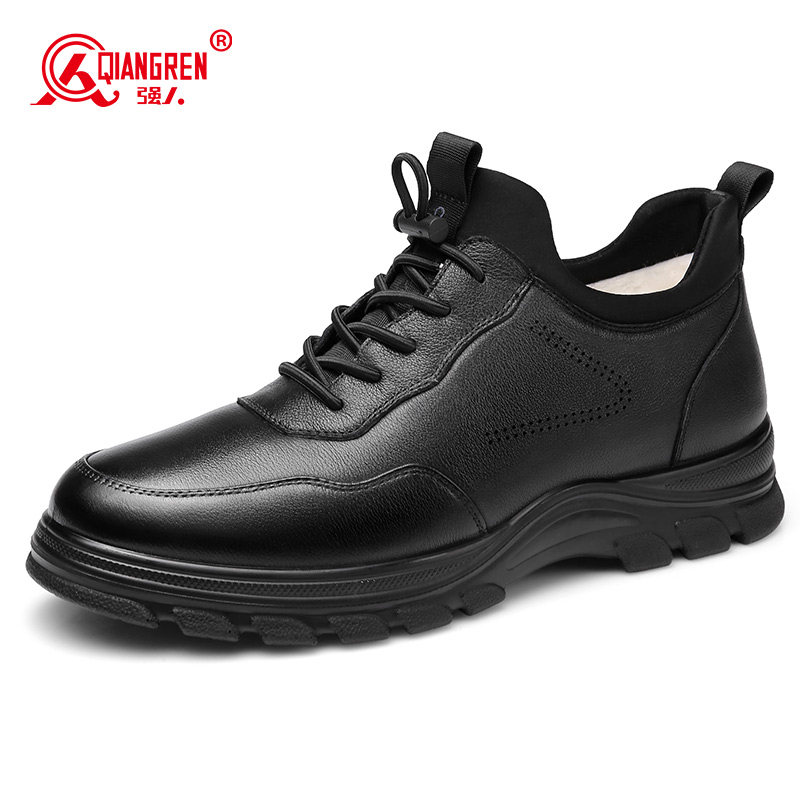 📚 强人3515运动皮鞋男冬季保暖棉皮鞋真皮休闲羊毛鞋黑色加绒大码潮