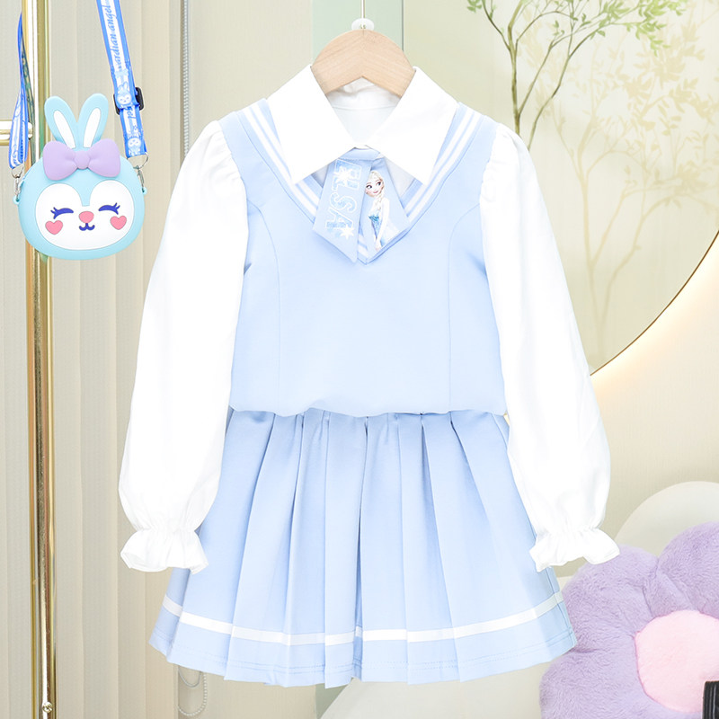 📚 2024秋季新款女童洋气三件套外套衬衫短裙儿童百搭外穿套装百褶裙