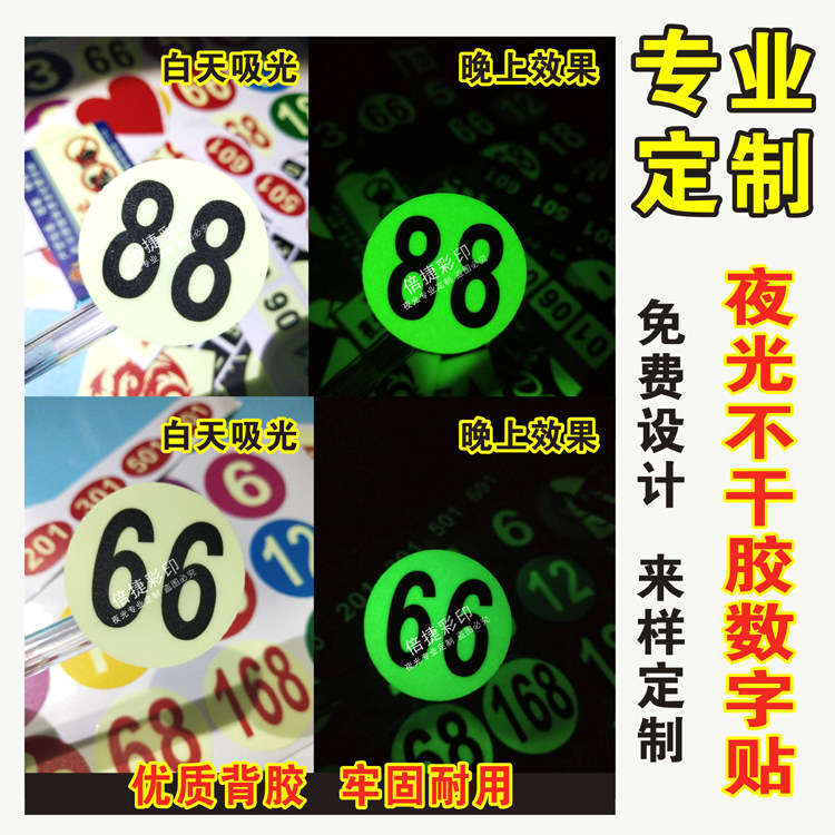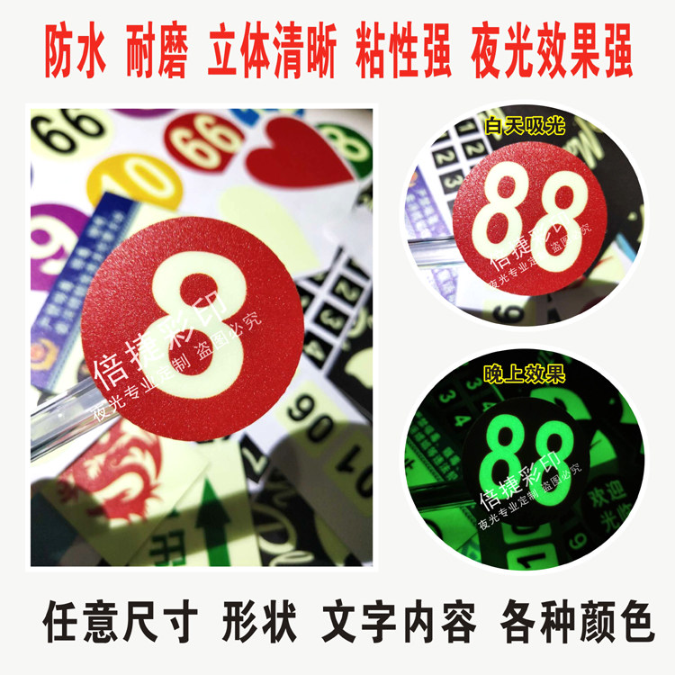 📚 定制夜光不干胶数字贴号码贴水晶滴塑编号贴标识牌警示标签贴