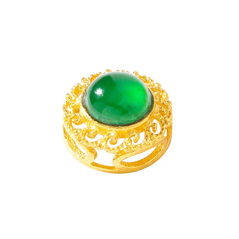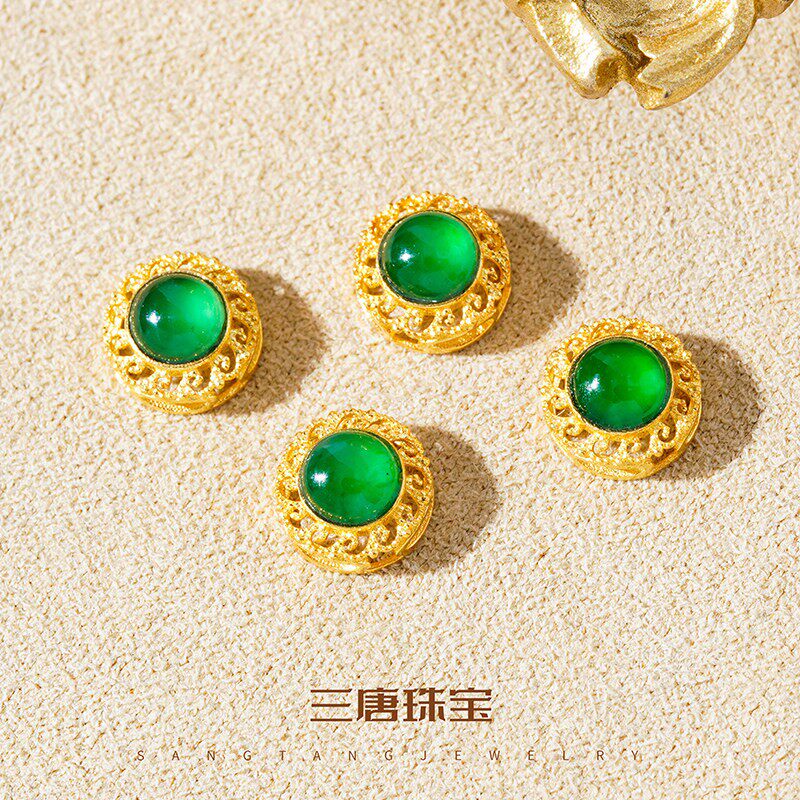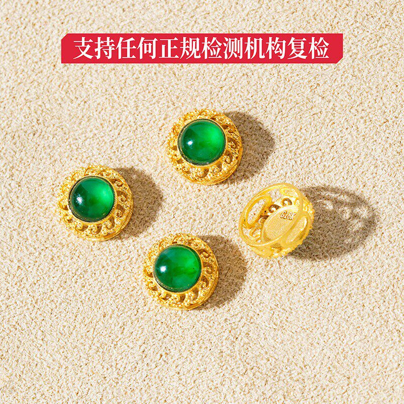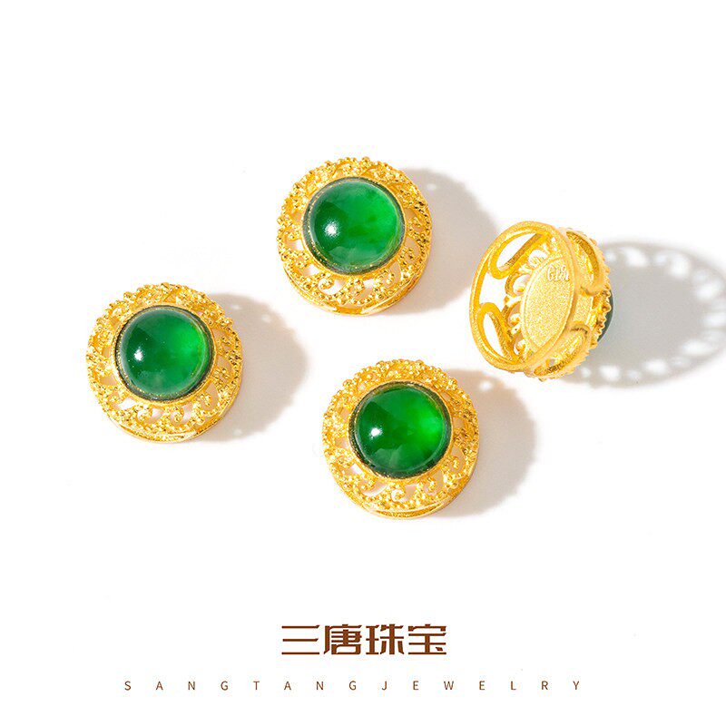 📚 18K手工古法老黄金镶嵌翡翠背云配饰DIY吊坠手链手串珠宝配件隔珠