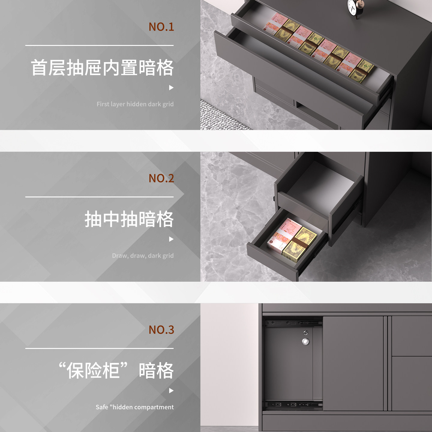 🔍特别值得一提的是它的暗格设计,真的是防偷神器!抽屉式暗藏玄机,让你的物品安全无忧。而且暗层柜中,存储空间超大,满足你的各种需求。👀