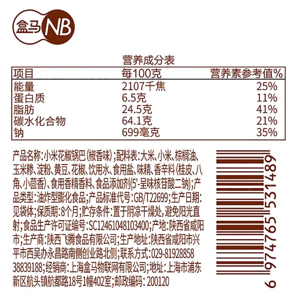 📚 盒马小米花椒锅巴椒香味220g零食糕点块大有型麻薯麻花口口香酥