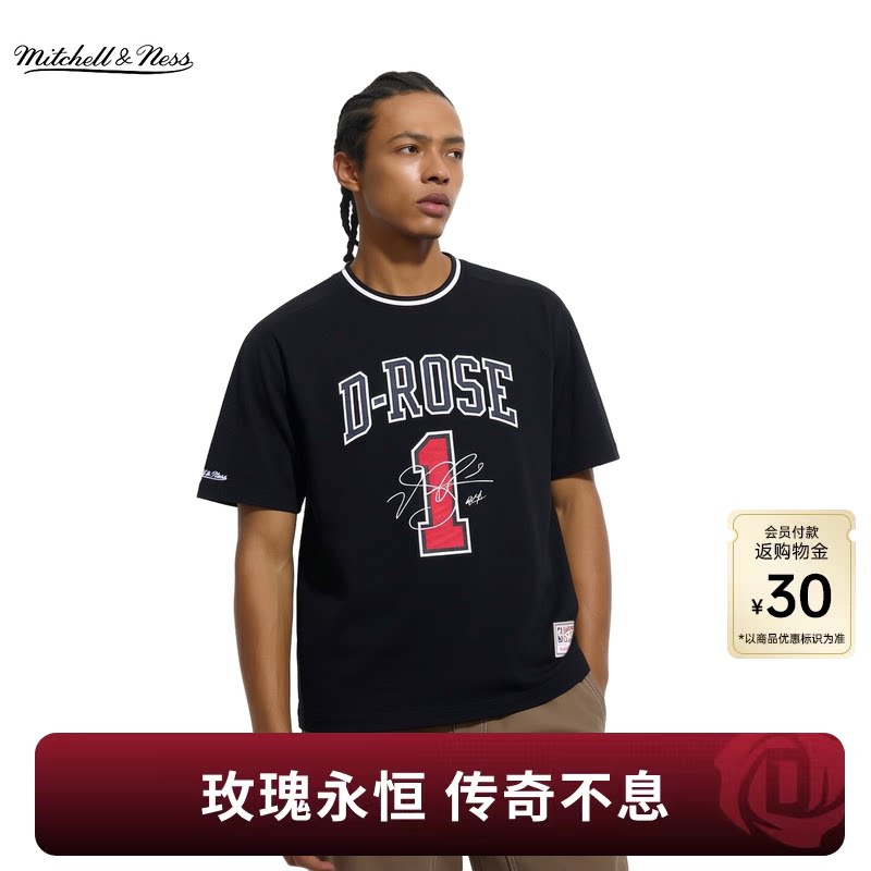 📚 Mitchell&Ness短袖T恤罗斯球衣退役1号公牛队运动健身上衣男MN