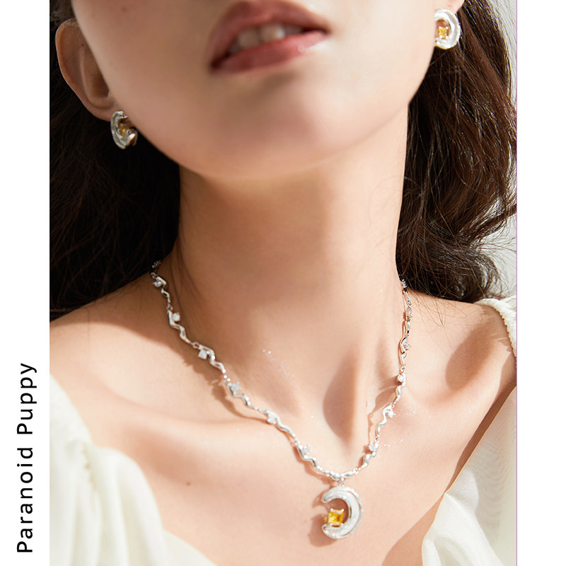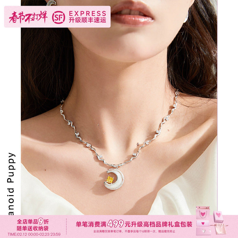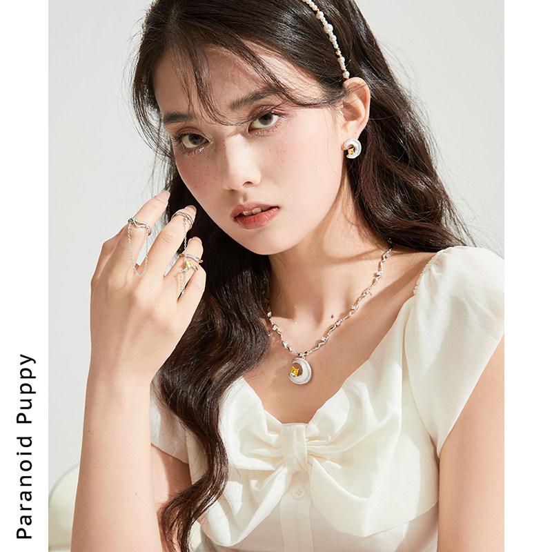 📚 PP饰品=拂星 原创贝壳月亮项链女轻奢小众颈链精致纯银锁骨链