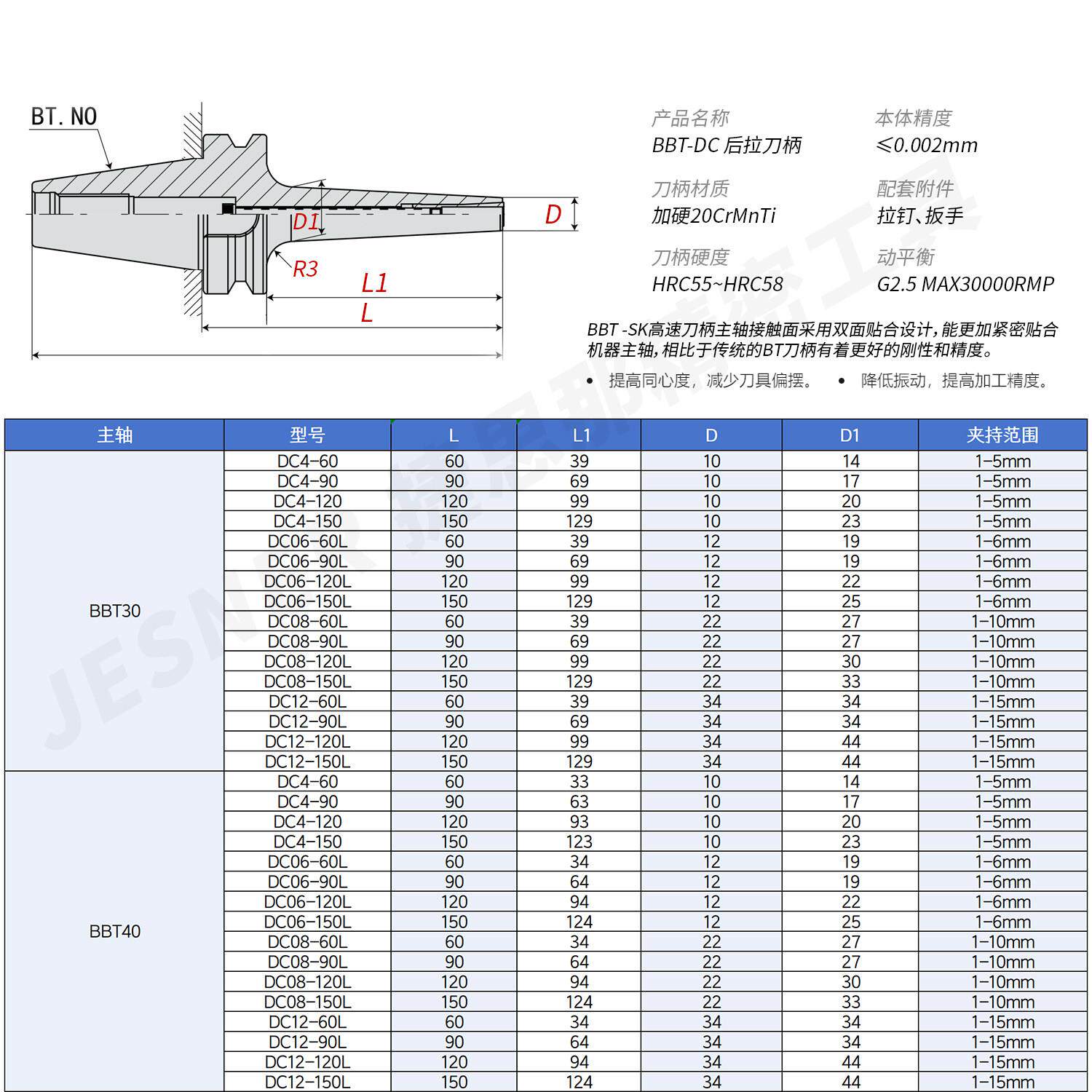 📚 后拉式刀柄BBT40-DC06/8/12高速动平衡内藏式筒夹数控BT30/BT50