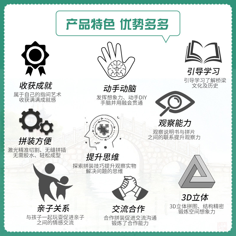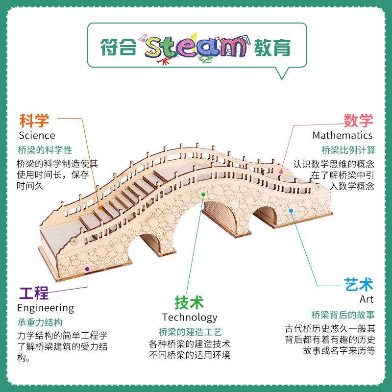 📚 diy手工制作 木质仿古桥梁赵州桥模型 拼装积木制小学生教学作业