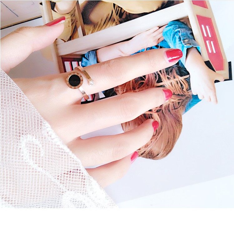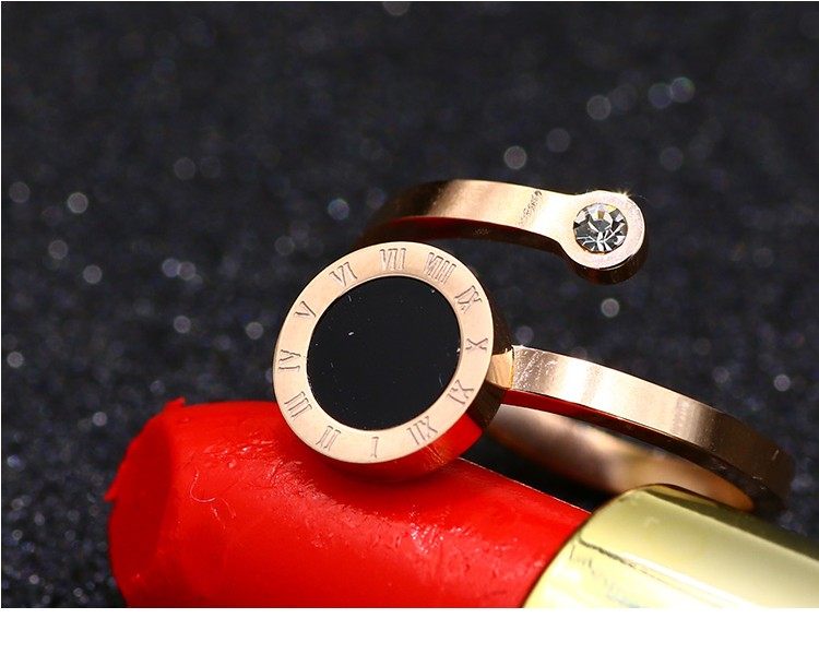 📚 开口圆环钻戒指女 钛钢18K玫瑰金简约潮人学生日韩国个性森系清新