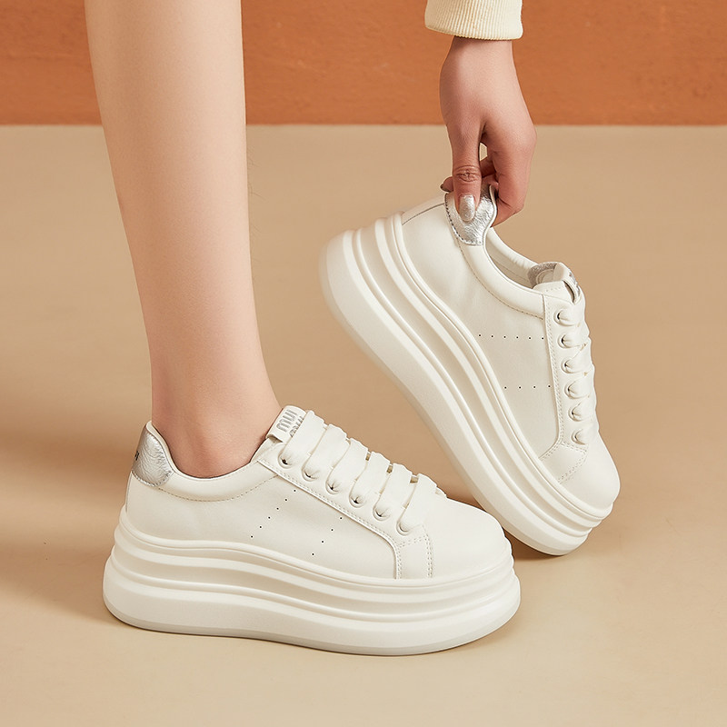📚 网红厚底增高百搭小白鞋女2025冬季新款甜美显小脚瘦板鞋轻便女鞋