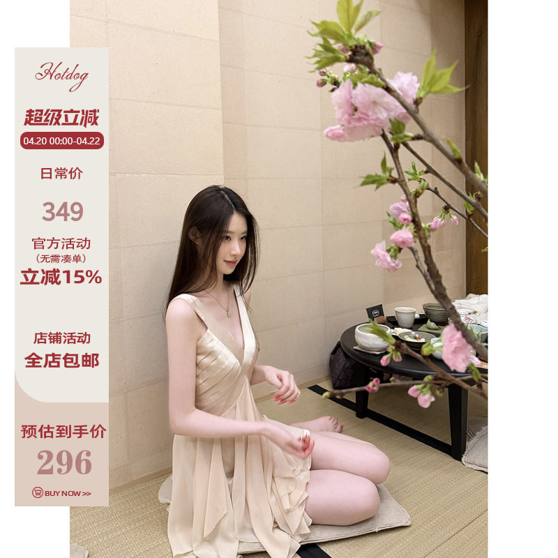 📚 Hotdog 热狗很辣【绮丽流光】纯欲性感深V连衣裙高级感气质吊带裙