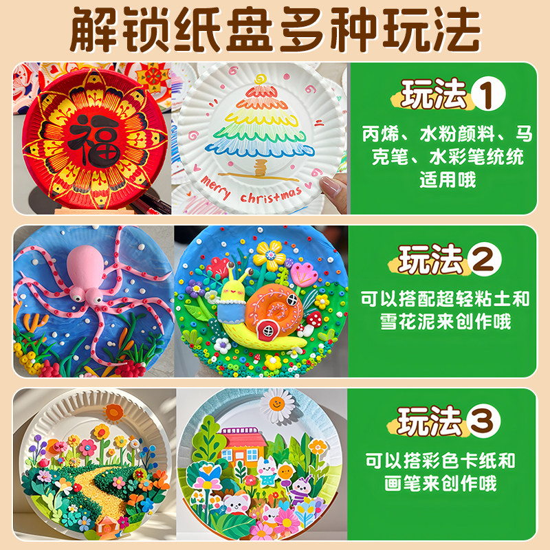 #纸盘美术 #一次性白色绘画材料 #幼儿园儿童手工DIY #好物分享 #券后价入手