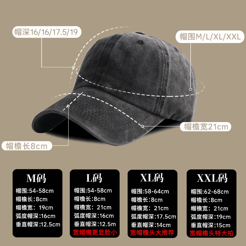 🔥超赞!超大头围男士水洗复古牛仔棒球帽👌券后价34.9,让你一秒变潮人!