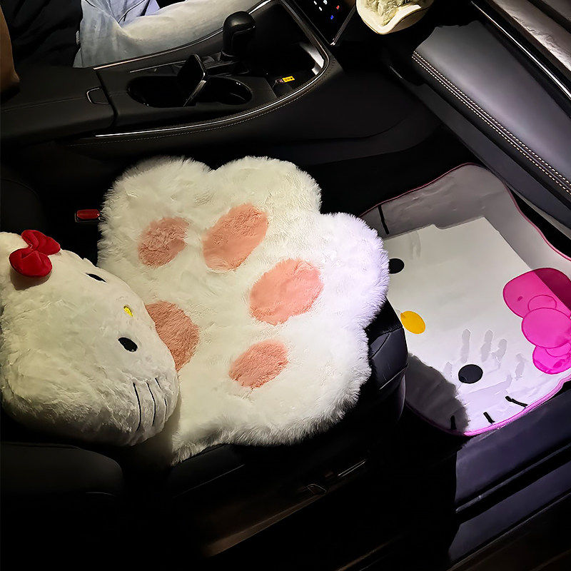 📚 可爱猫爪汽车坐垫冬毛绒kt高级感屁垫副驾驶女朋友专属座四季通用