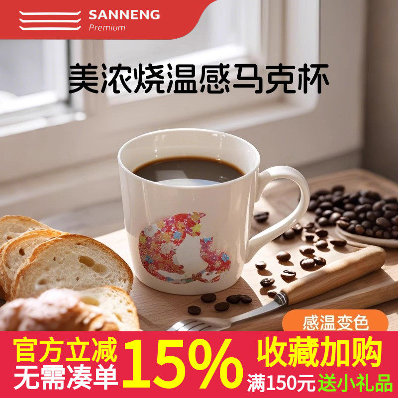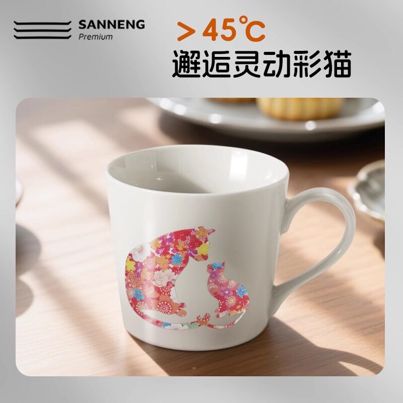 📚 三能日本进口美浓烧丸モ高木陶器猫咪咖啡杯 创意热感变色马克杯