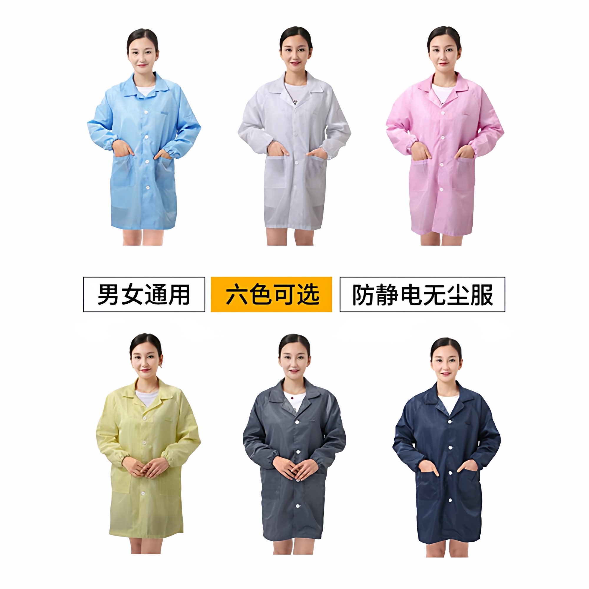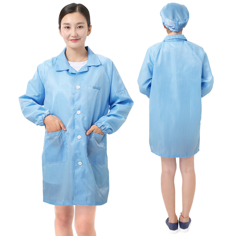 📚 静电衣长款大褂无尘电子厂食品车间防尘静电服蓝色白色男女工作服