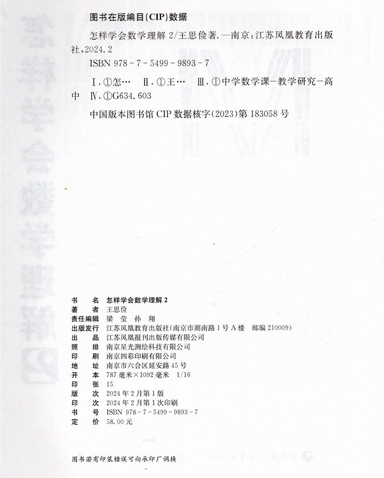 📚 怎样学会数学理解2 高中生适用 王思俭 著 中学数学课教学研究 江苏凤凰教育出版社