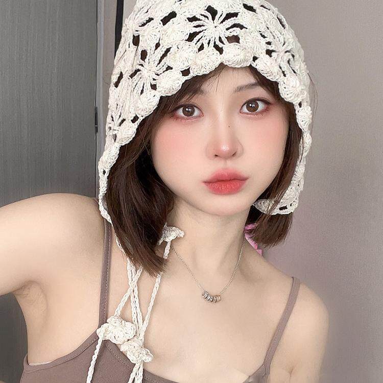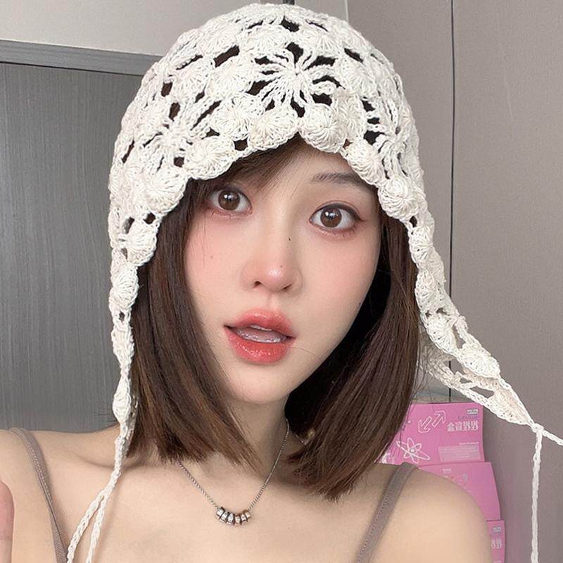 📚 帽子女2025新款镂空透气包头帽子女韩版文艺手工编制流苏帽显脸小