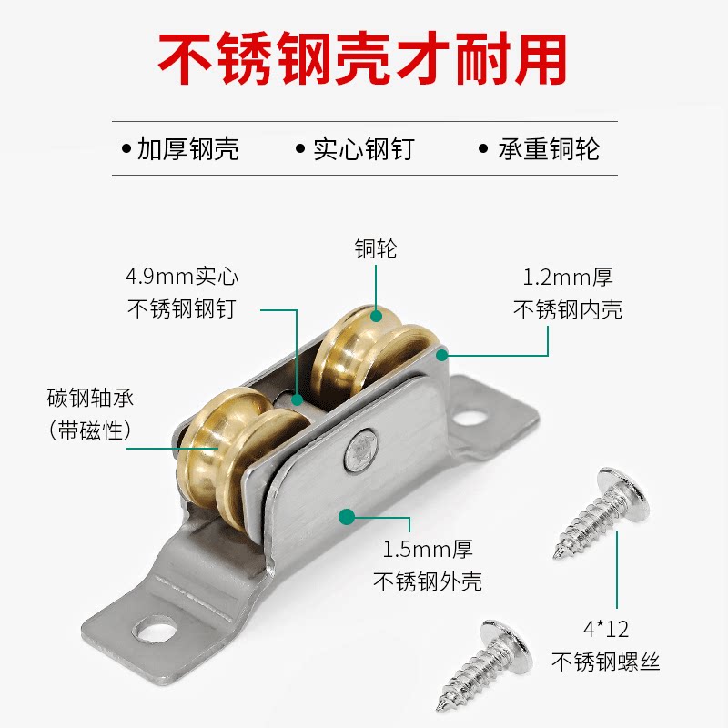📚 加高塑钢窗户滑轮推拉移门不锈钢铜轮防水防锈无底框门窗滚轮子下