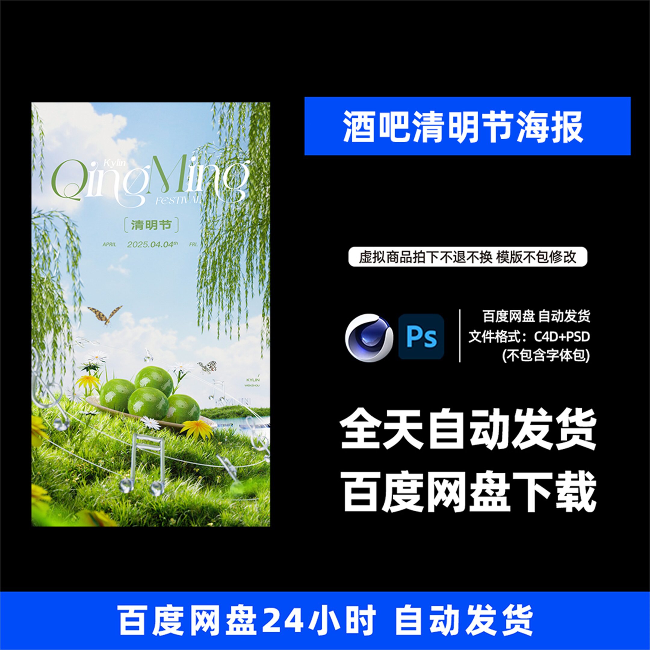 📚 酒吧夜店KTV酒馆会所清明节宣传海报C4D模板设计素材1338期