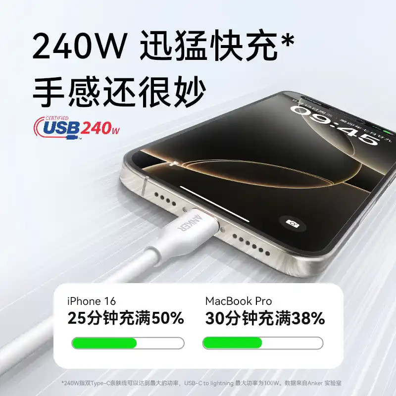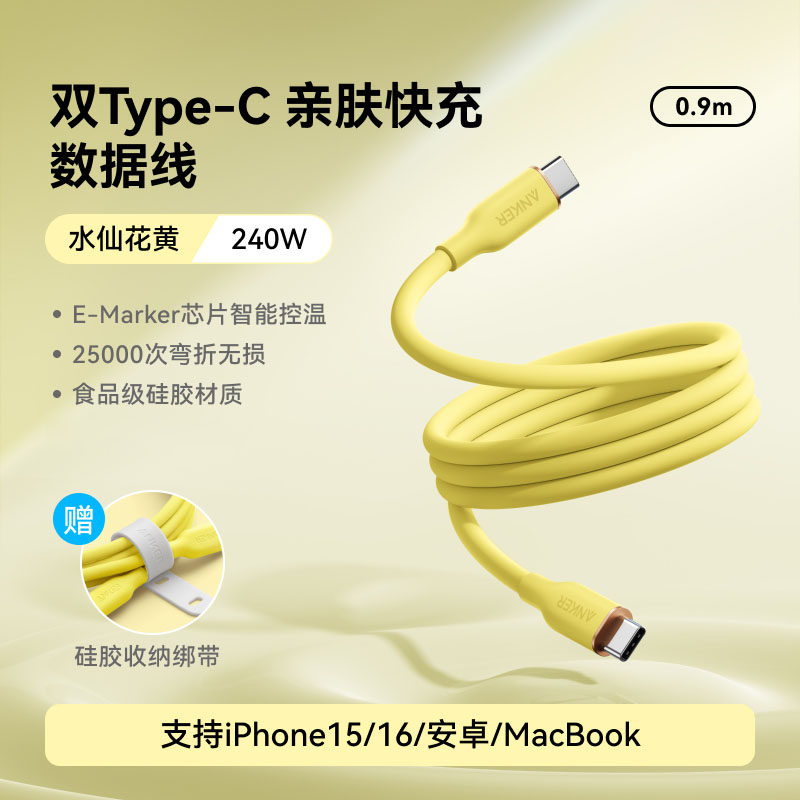 📚 Anker安克硅胶亲肤线适用苹果iPhone16proMax快充线15数据线240W双typeC