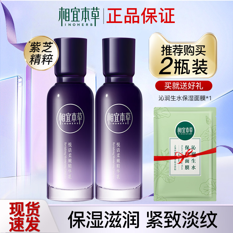 📚 相宜本草悦活紫芝精华乳液霜紧致抗皱保湿滋润补水官方正品旗舰店