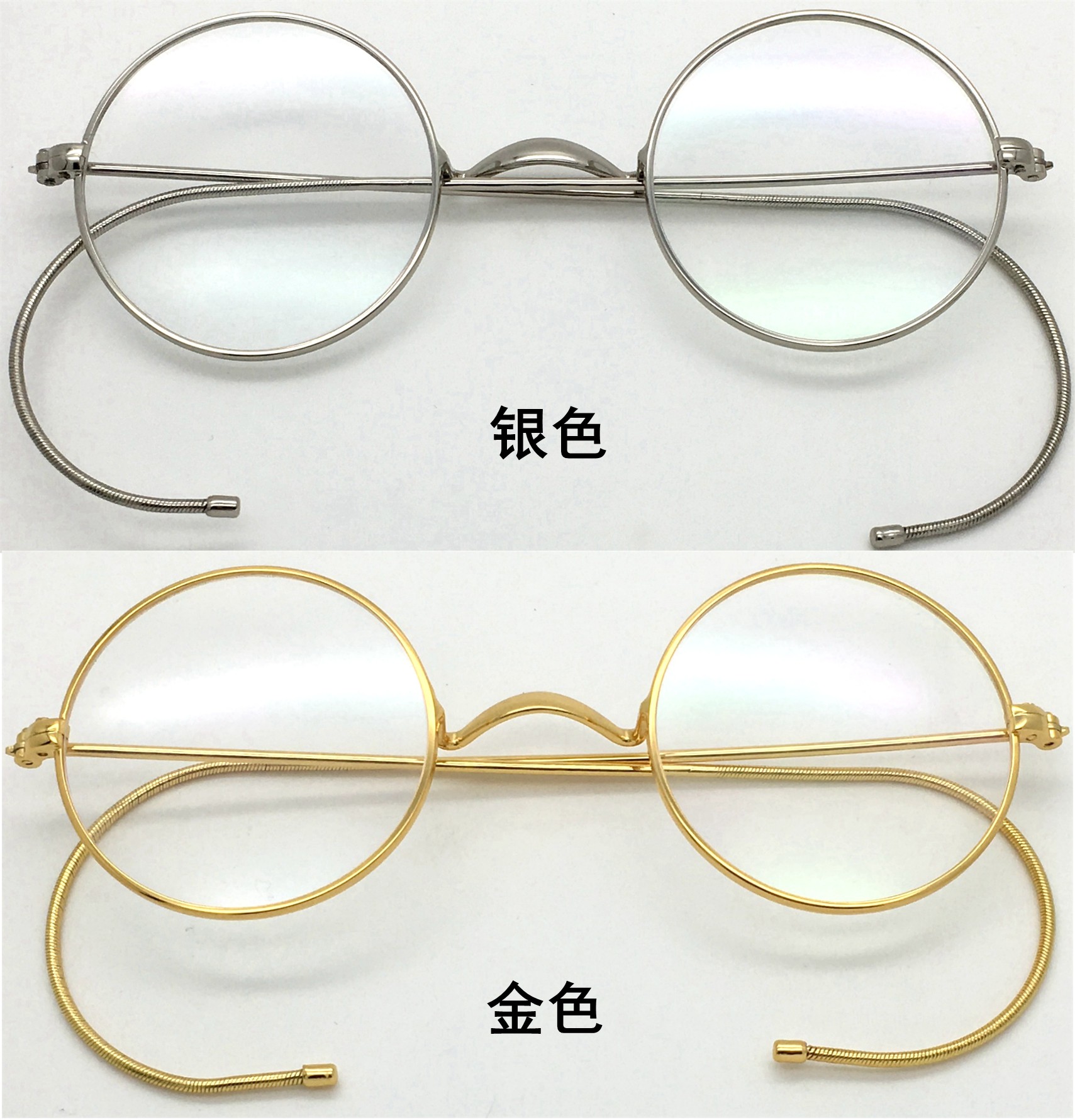 📚 复古正圆形挂耳式小框眼镜架民国风无鼻托金丝眼镜男女小脸配近视