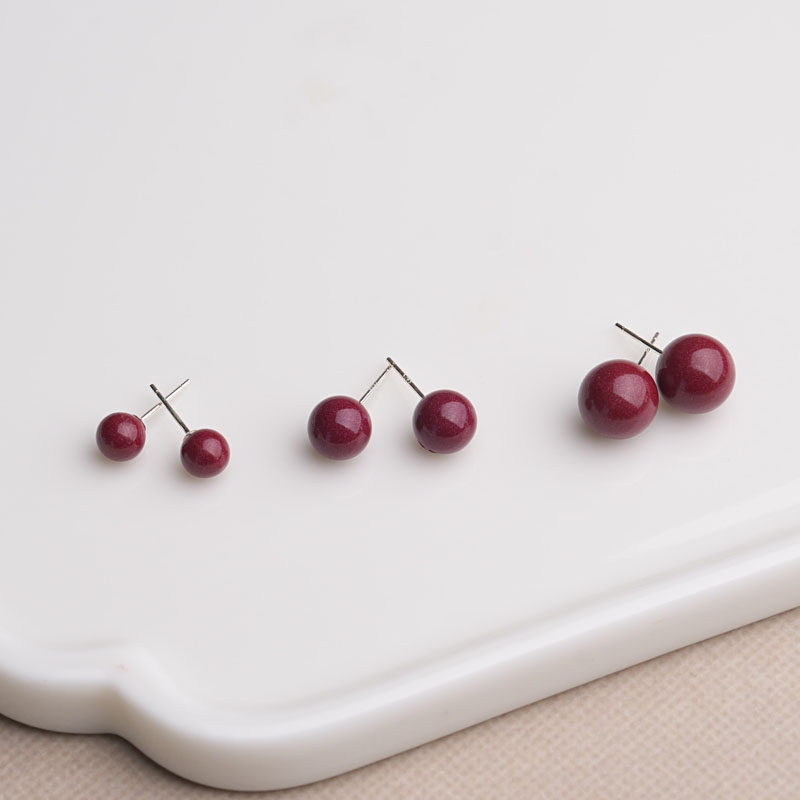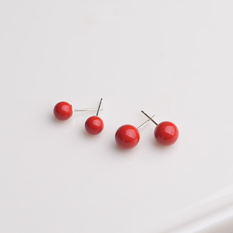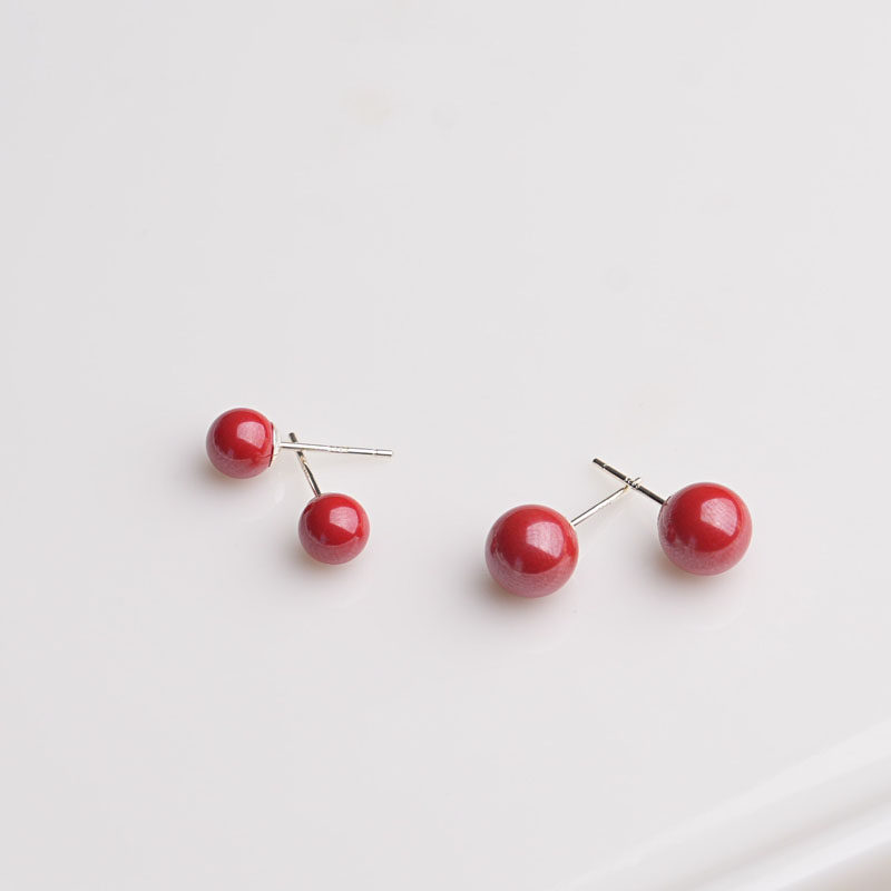 📚 s925银耳钉耳钩耳线高含量朱砂圆珠耳钉紫金帝王红砂女生饰品