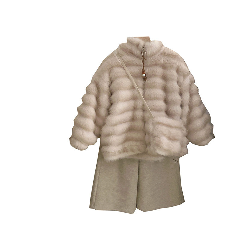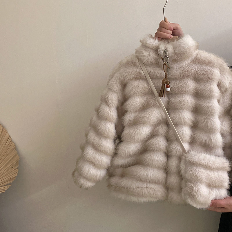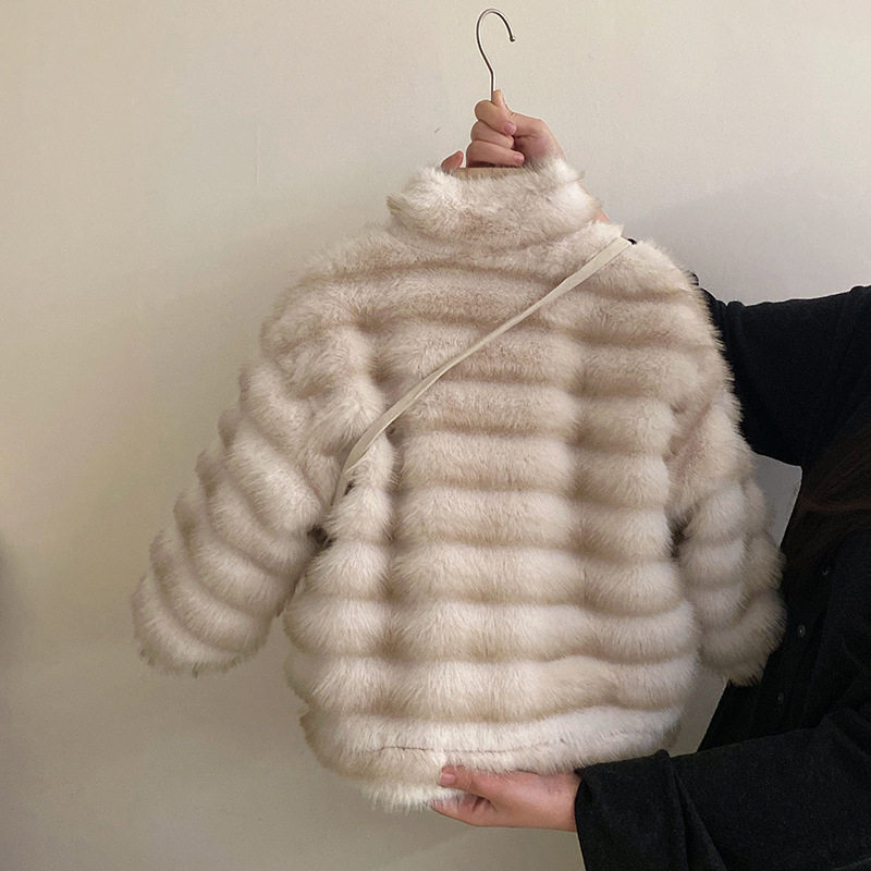 📚 女童韩系2025秋冬季新款慵懒立领保暖毛毛外套配包包中小童上衣潮