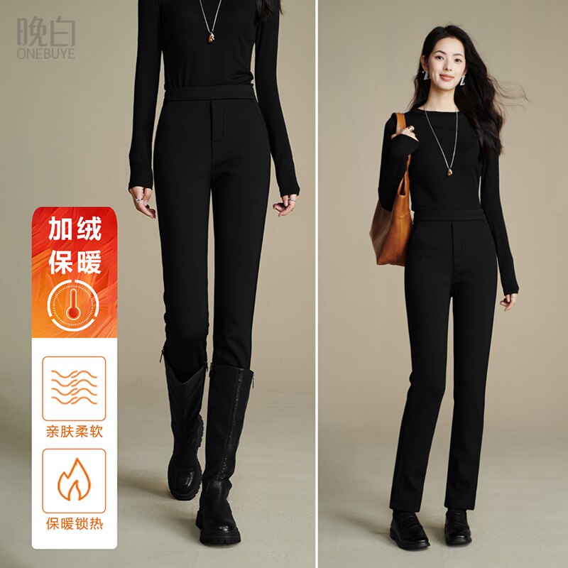 📚 【汤曼妮粉丝专享】晚白冬新款时尚铅笔裤加绒弹力紧身休闲裤女