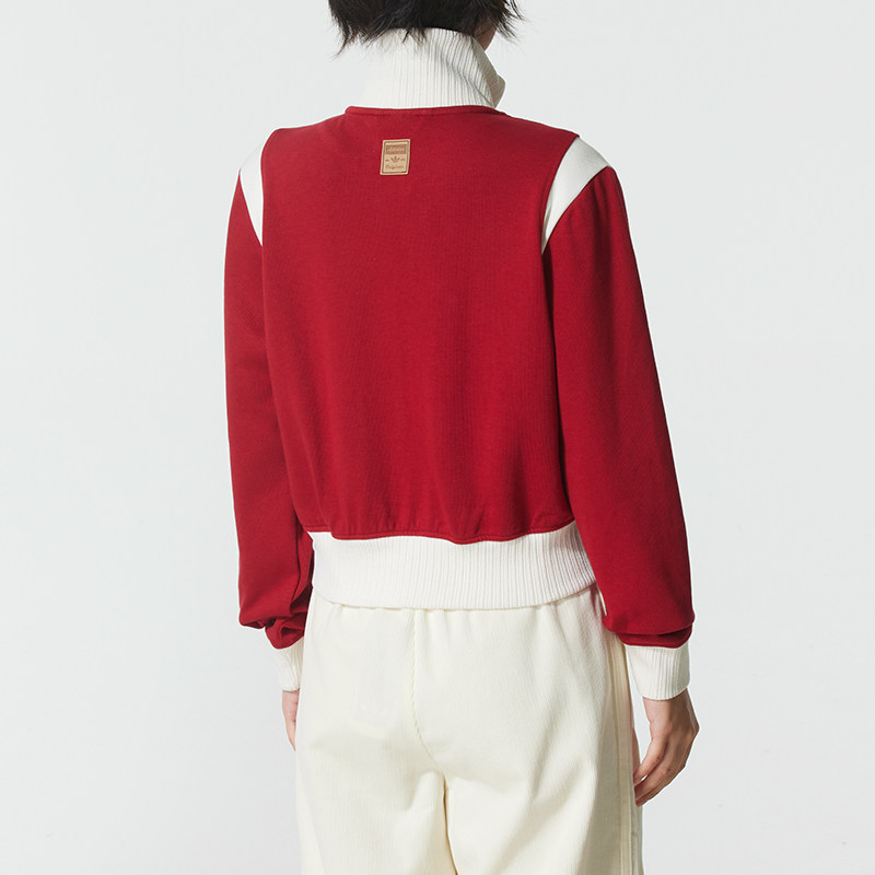 📚 阿迪达斯三叶草红色外套女25新年款立领短款休闲针织运动服KG8221