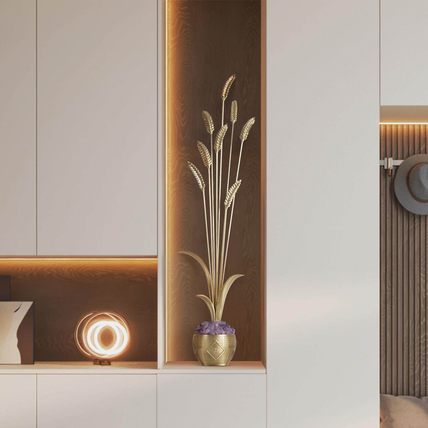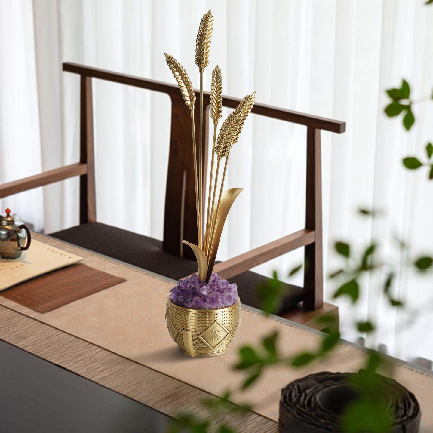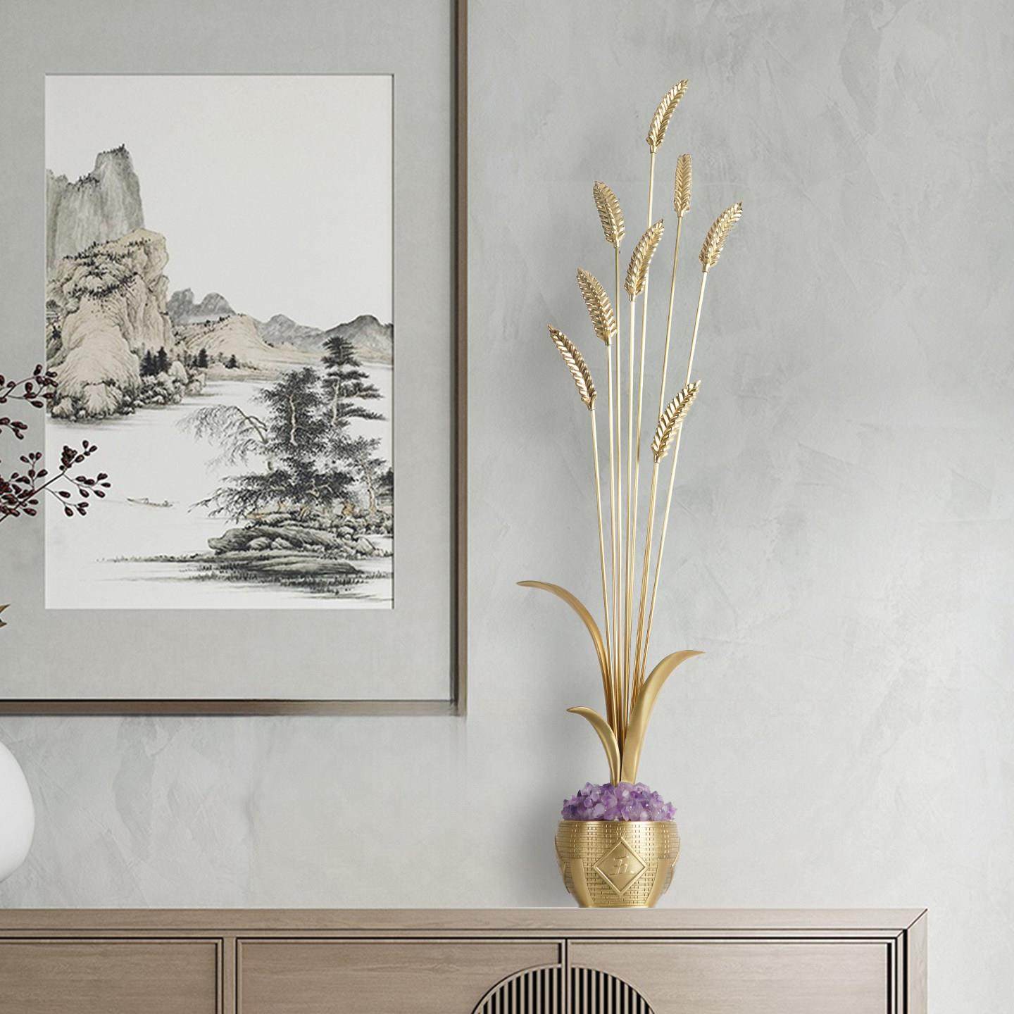 📚 新中式黄铜聚宝盆麦穗摆件玄关客厅电视柜装饰品开业乔迁五谷丰收