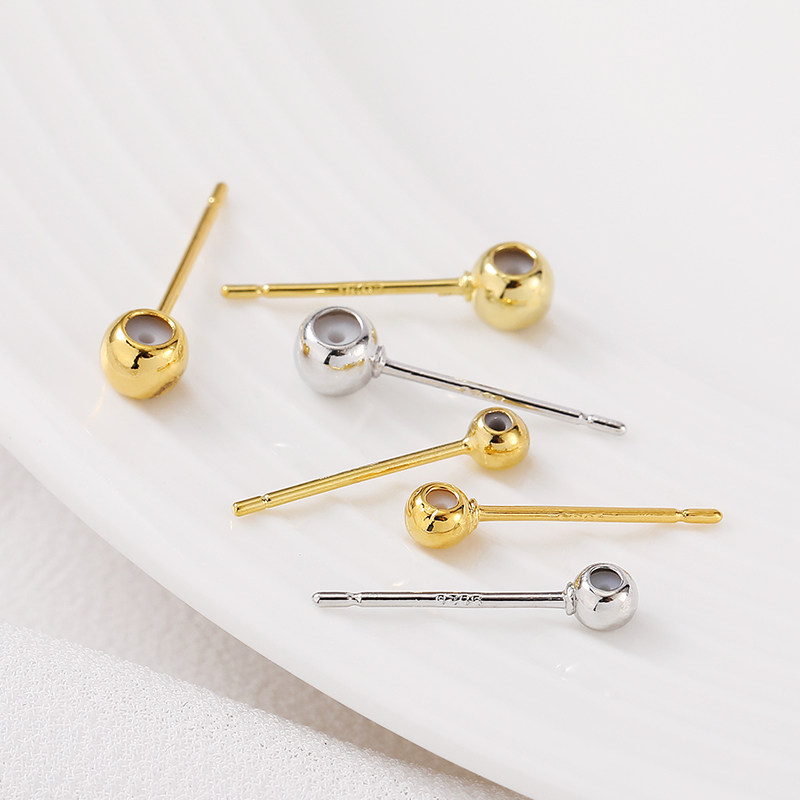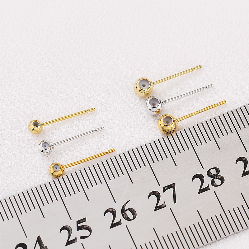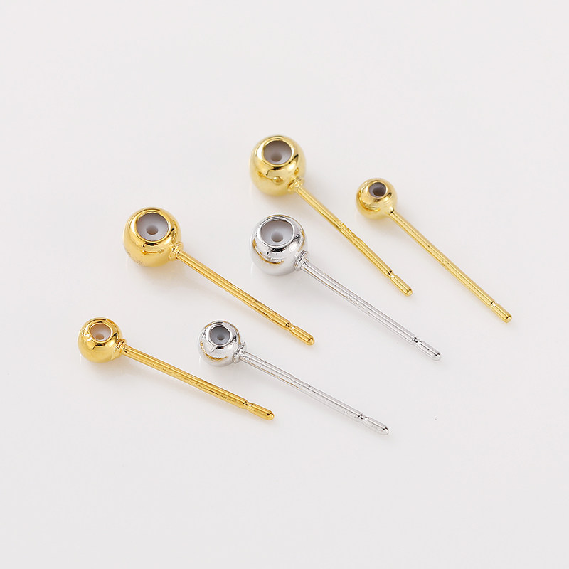 📚 14K包金银色保色豆豆硅胶调节耳钉耳针手工diy耳环耳饰品材料配件