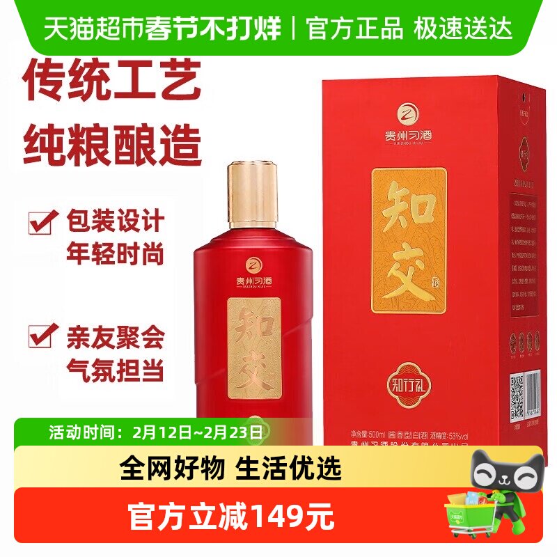 📚 贵州习酒知交知行礼礼盒53度酱香型500ml*1送礼宴请国产粮食白酒