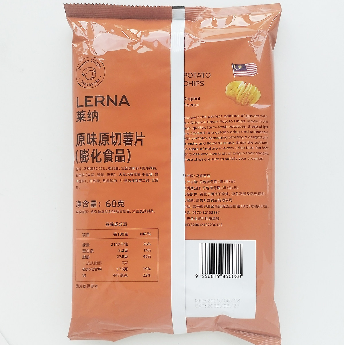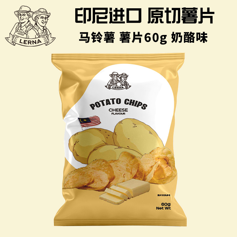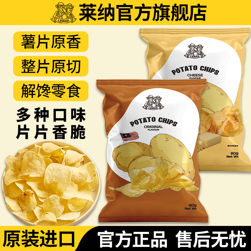 📚 莱纳薯片60g原切烧烤味LERNA进口膨化奶酪休闲零食办公室小吃