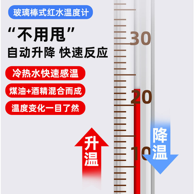 📚 红水温度计玻璃棒式测水温油温工业实验酒精水银高精度家用温度表
