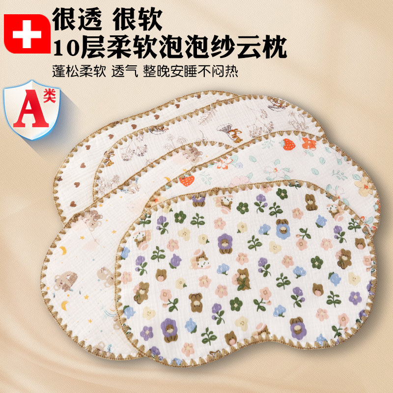 📚 10层棉纱新生儿云片枕透气婴儿定型枕平枕宝宝吸汗枕透气柔软加厚