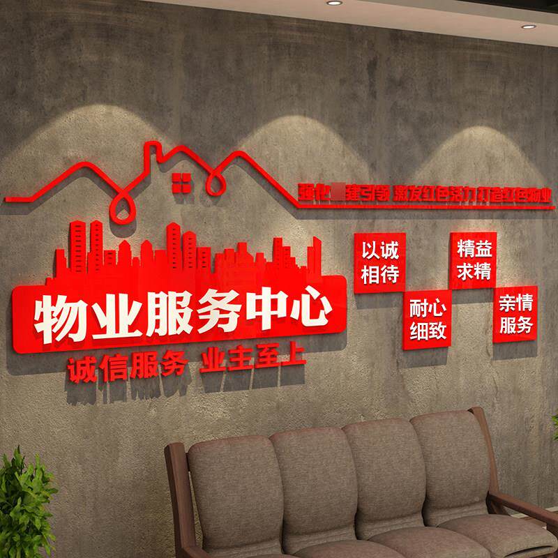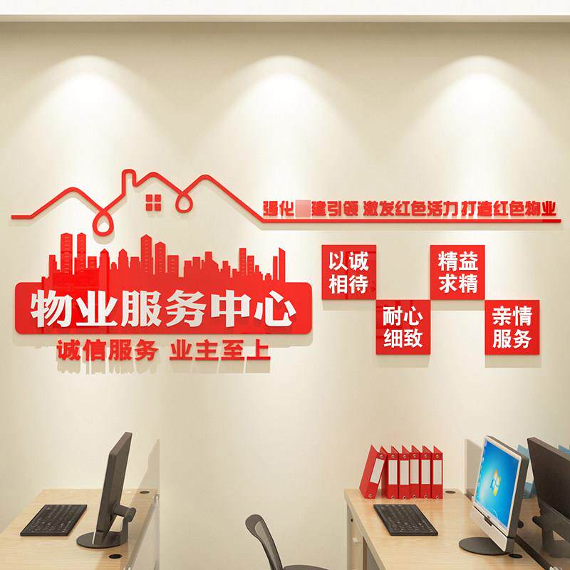 📚 红色物业办象公室布置司文化墙装饰画服务中心形前台公背面景8050