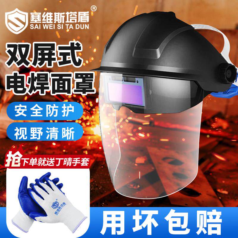 📚 自动变光电焊防护面罩安全帽式防烤全脸焊工焊帽专用烧氩弧焊头戴