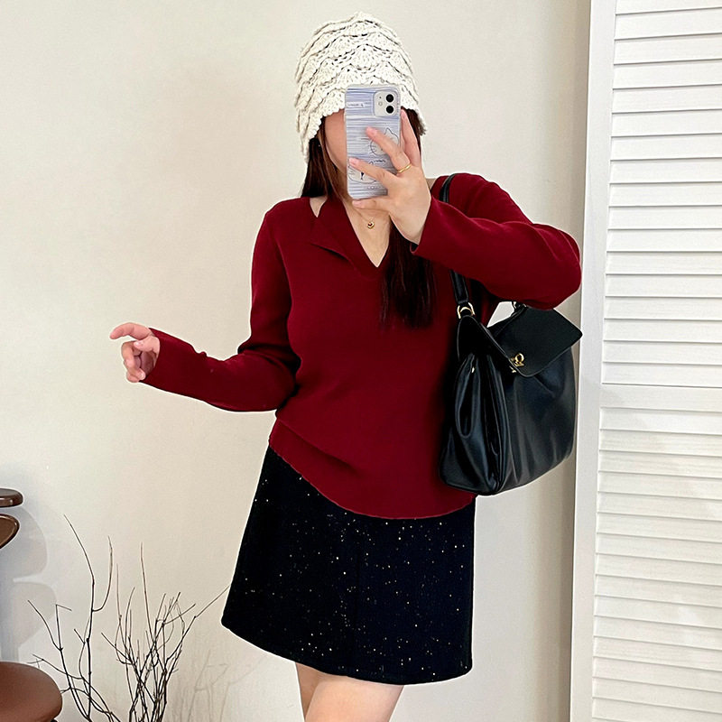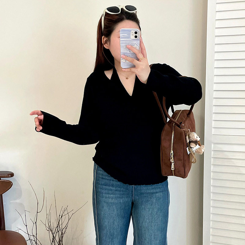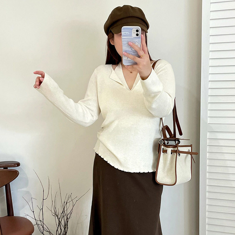 📚 乃粒大码女装设计感假两件挂脖上衣2025秋冬胖mm打底针织衫23327