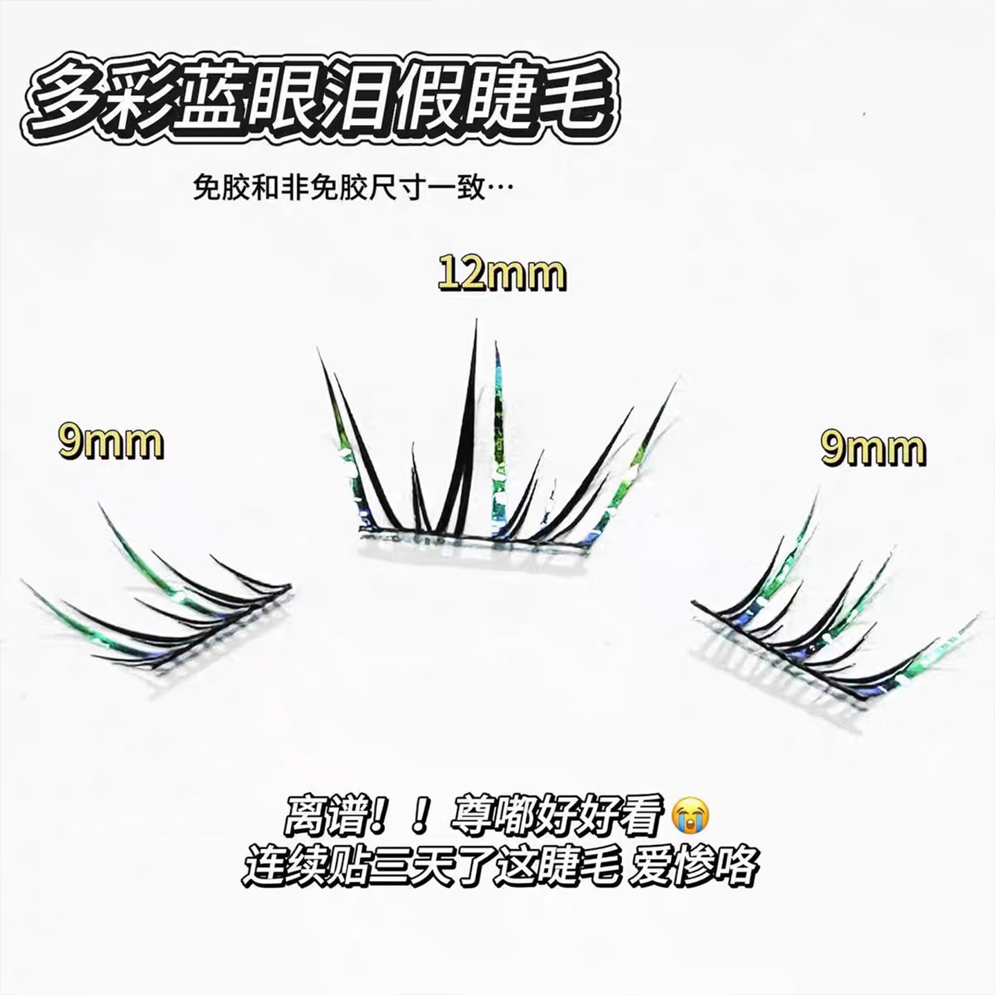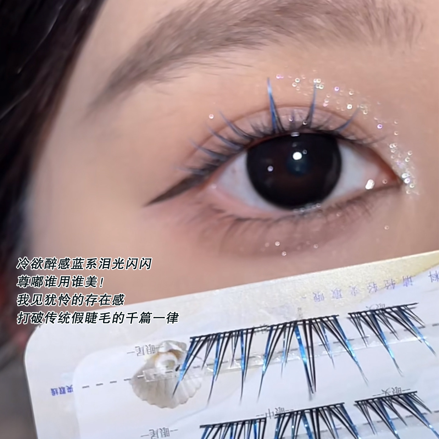 📚 眼上极光~蓝眼泪假睫毛细闪渐变彩色小恶魔自然立体卷翘漫画眼