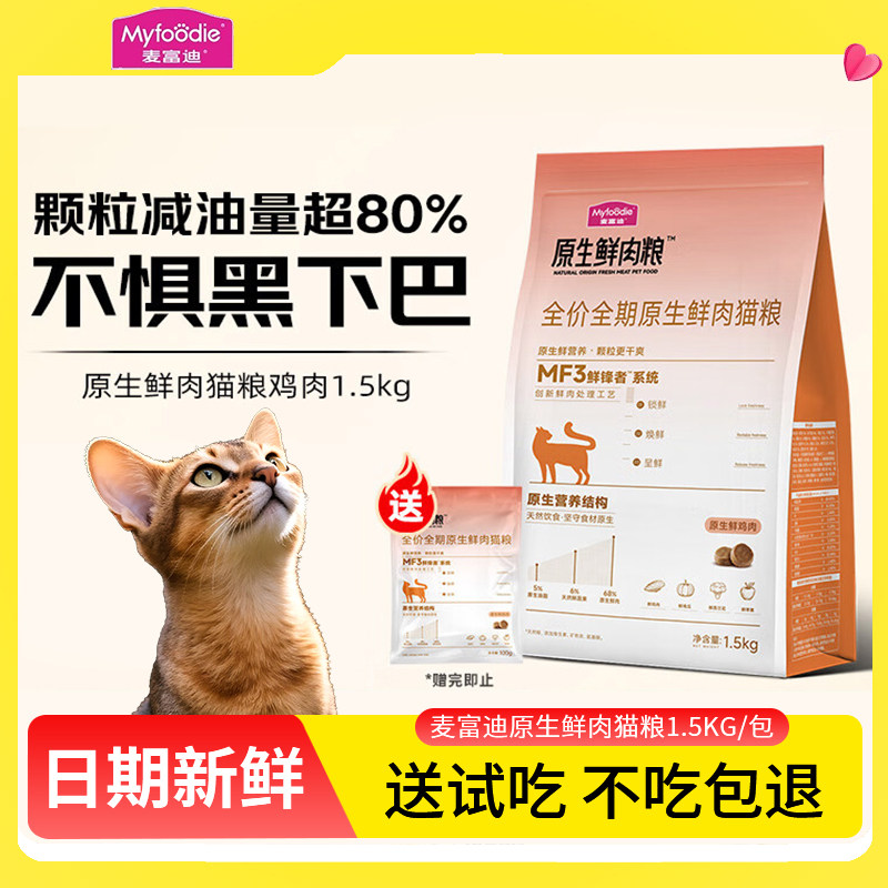 📚 麦富迪猫粮全期营养猫咪去黑下巴成猫幼猫专用原生鲜肉粮麦迪富