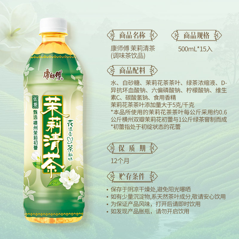 📚 康师傅茉莉清茶饮料整箱装低糖0脂居家囤货解腻茶饮品