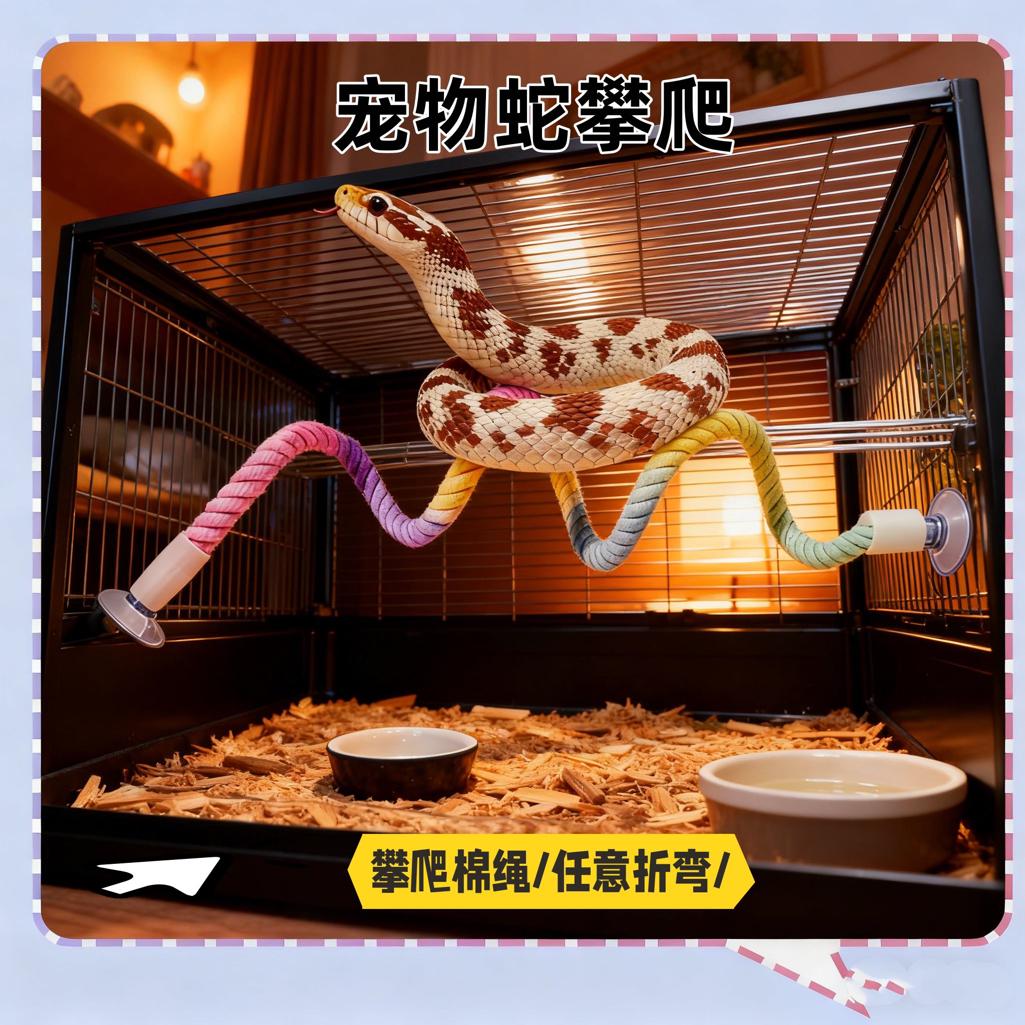 📚 宠物蛇专用攀爬棉绳可曲折蛇缸造景饲养箱套装互动用品爬宠玩具