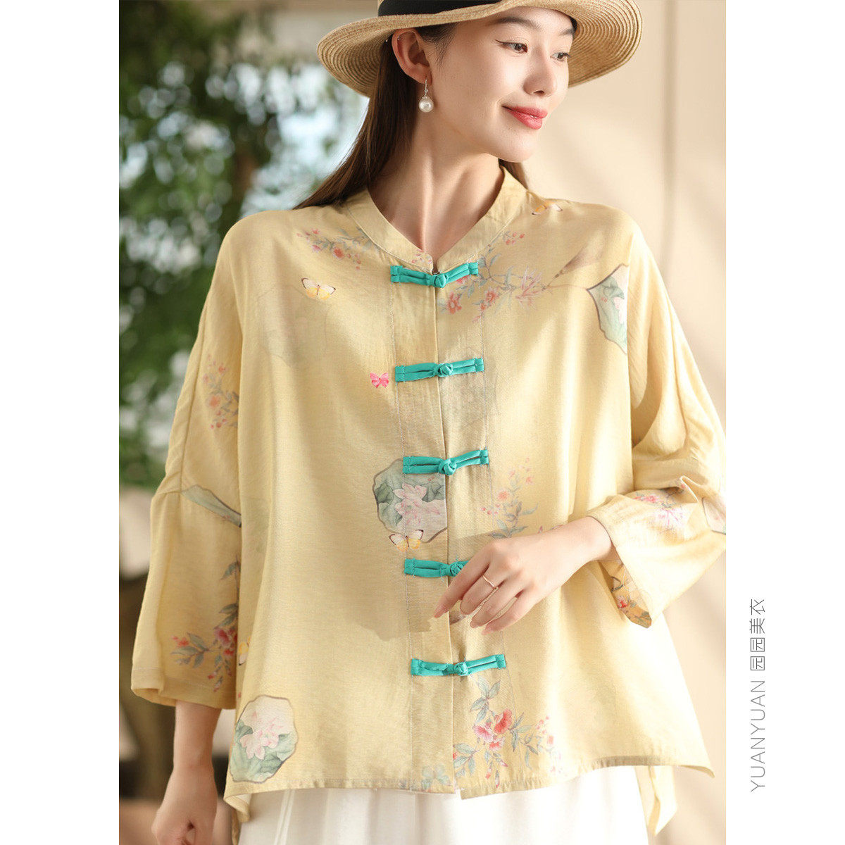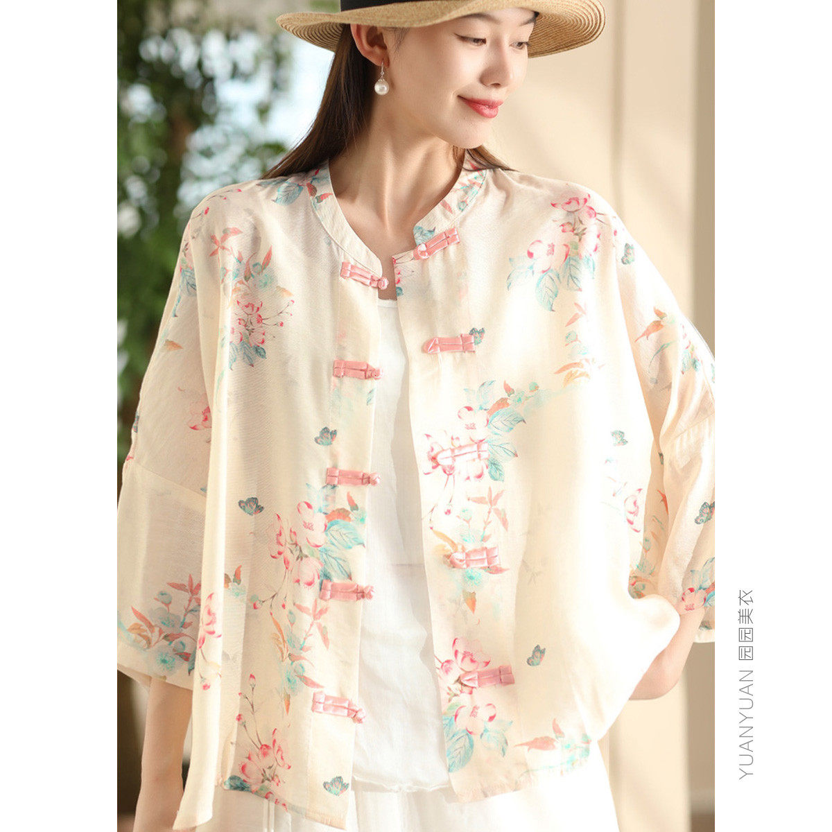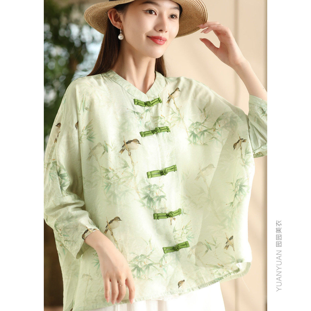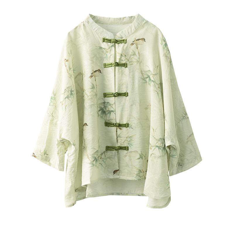📚 印花丝麻衬衫女文艺新中式盘扣衬衣开衫气质薄款外搭