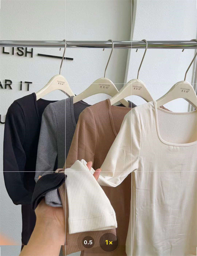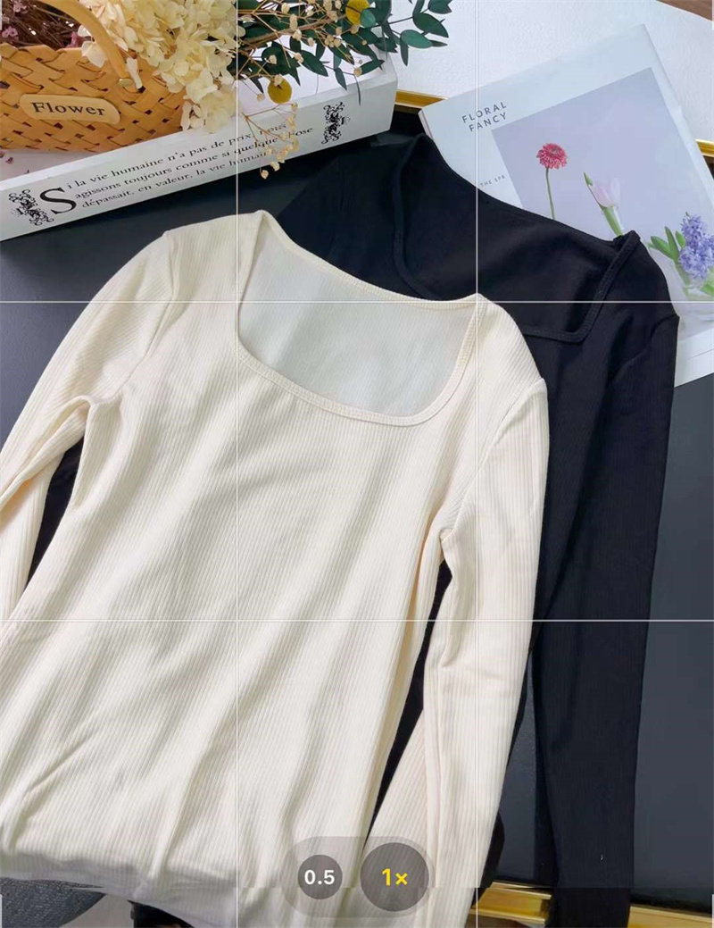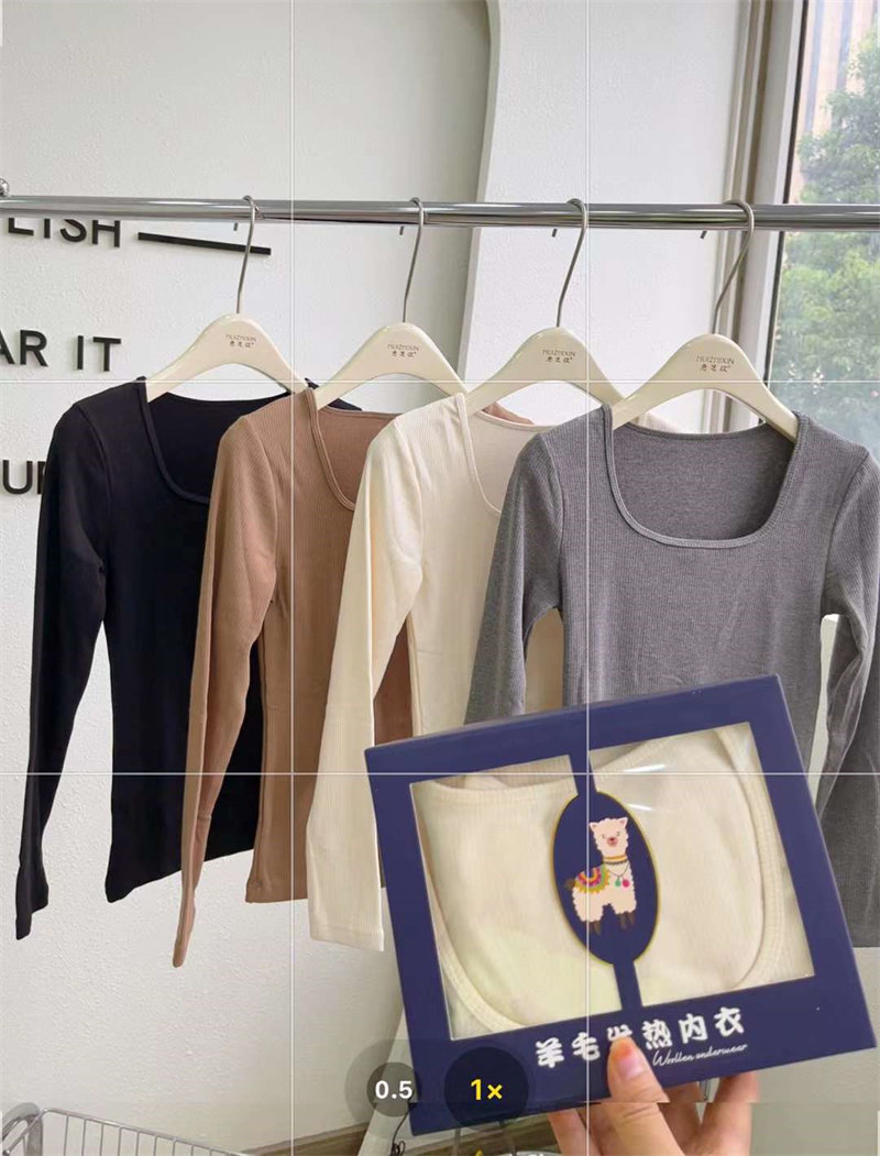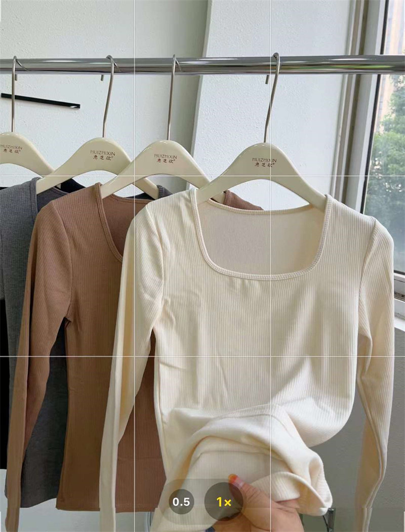 📚 惠芝欣22208方领羊毛自发热长袖保暖打底衫螺纹显瘦秋冬外穿上衣